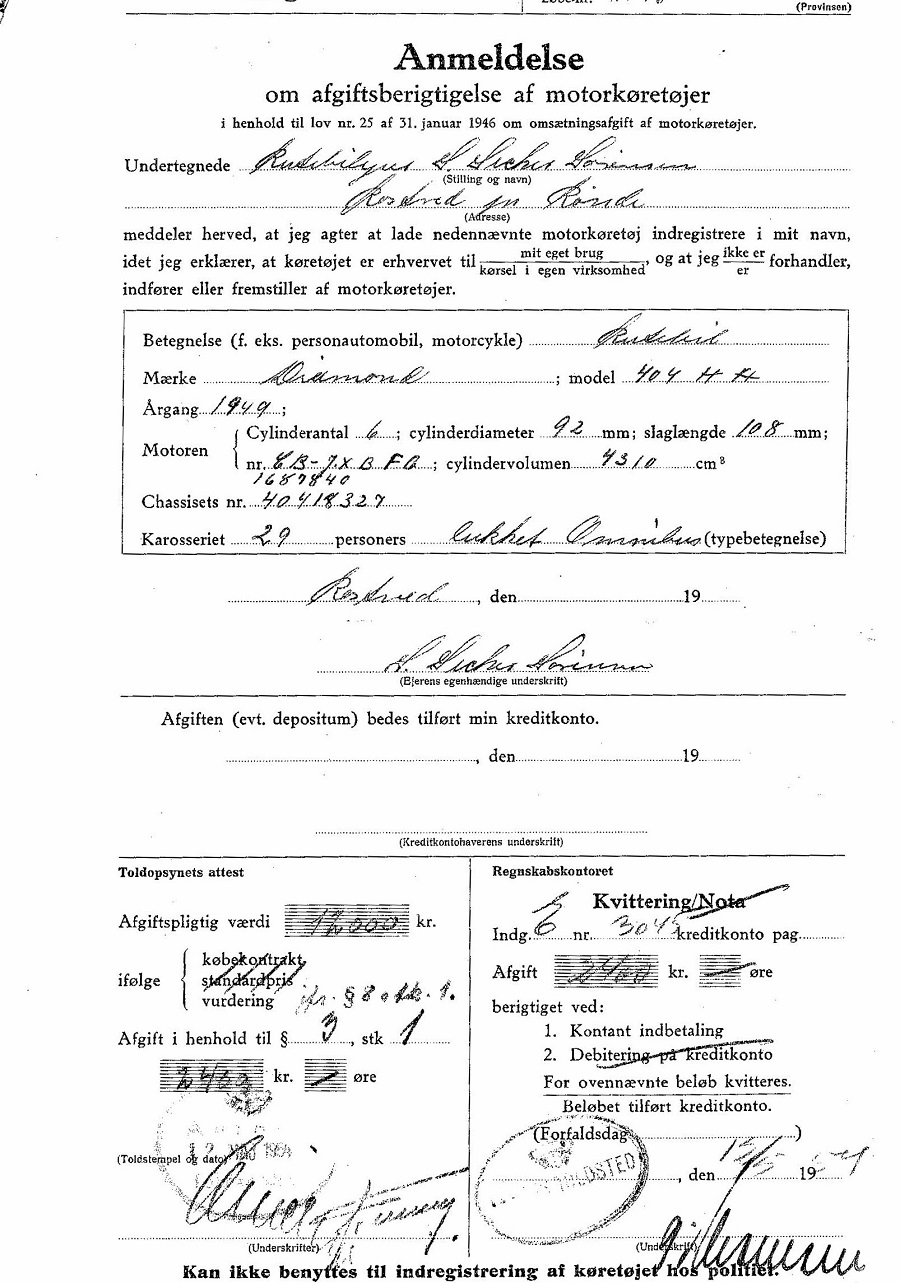 Vedrørende omregistrering til turistkørsel